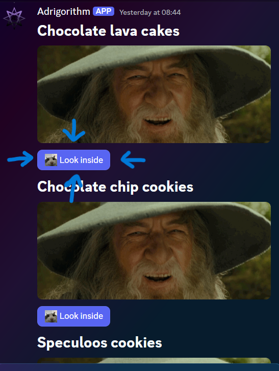 Consider this component (the same as used in Intro). The buttons have a customId of "recipes-show-me-button-{recipe.RecipeId}", where the last part is an unique identifier.